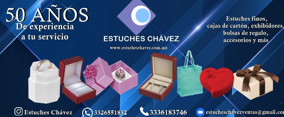 NosotrosEstuches ChavezEmpresa mexicana con más de 50 años de experiencia dedicada a la fabricación, distribución y personalización de estuches, cajas de regalo, accesorios, bolsas y exhibidores para joyería. |